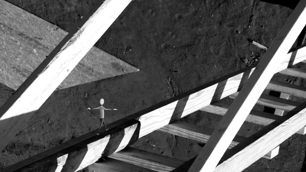 It started with a photography assignment: shoot a familiar place in an unfamiliar way. My parents’ neighborhood was under construction, with half-built homes, dirt roads, and scaffolding casting long shadows across empty lots. I became obsessed with places that felt still, devoid of life to the point where they almost seemed dream-like, and I wanted to depict that feeling.