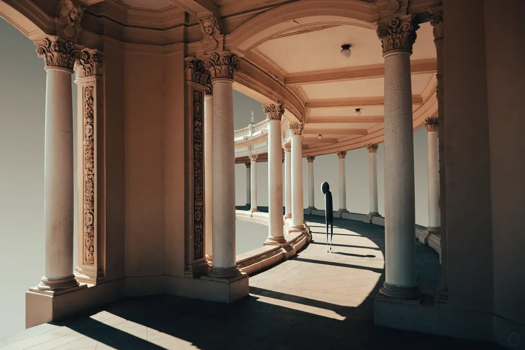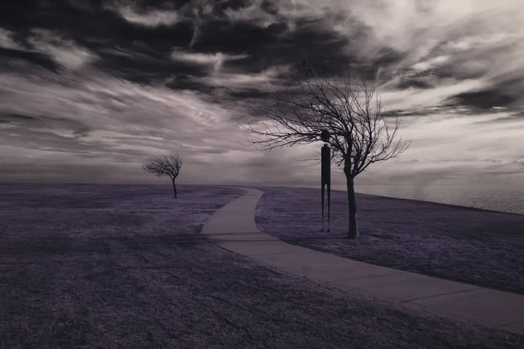 The initial 7 pieces represent the culmination of two years of exploration. I took my experimental black-and-white photography studies and refined them into a cohesive artistic statement. These seven pieces became my thesis: Onism, Suburbia, Frostbitten, Mezzanine, Ether, OlÄ“ka, and Exulansis. Each one a frozen moment in the character’s endless journey.
