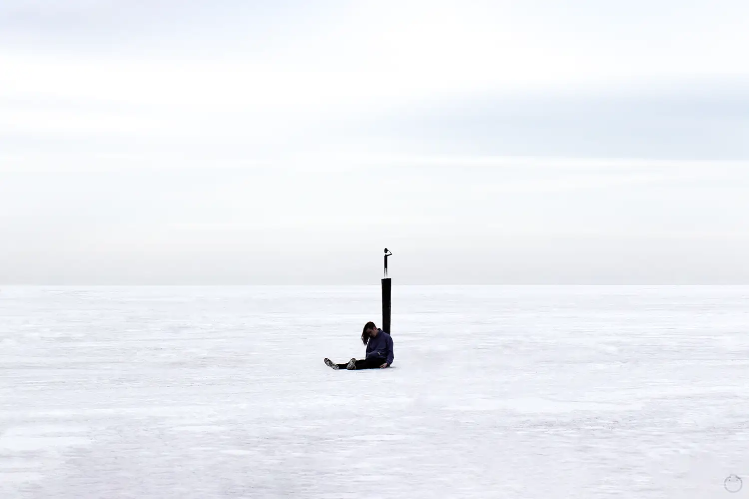 The centerpiece was Exulansis, shot on the Oklahoma salt flats. A lone post in the middle of nowhere. The character sits beside what looks like a body (or is it resting? preserved? dead?). It’s a deeply personal image: that figure on the ground is me. Despite how bleak it looks, this post and this “corpse” are the only tether to reality. Would you leave it to brave the endless horizon? Or stay with the one familiar thing, even if it’s lifeless?