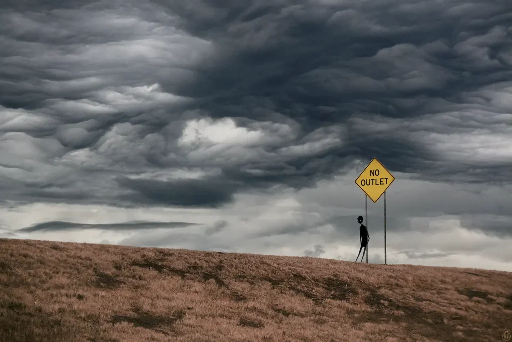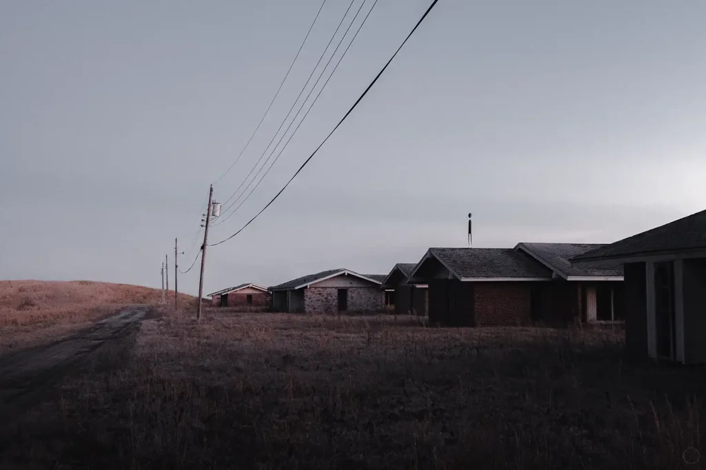 The First Places was where the concept clicked: color photographs of forgotten Oklahoma landscapes paired with a single wandering figure, creating a vocabulary for being stuck between destinations. These works sought to demonstrate the choice: do you stay, or do you go?